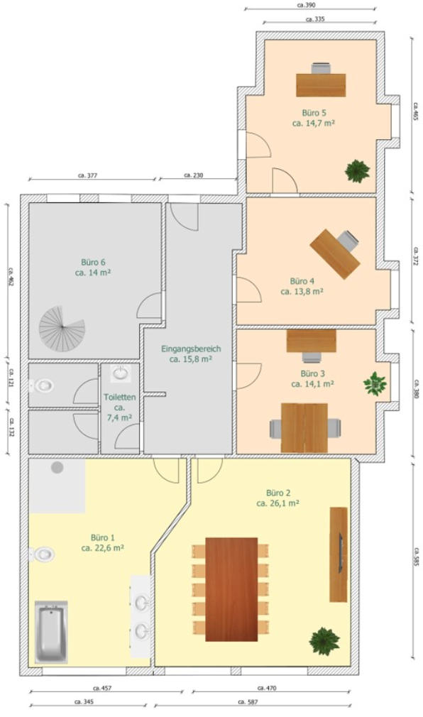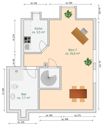 Gewerbeeinheit / Büro / 7 Zimmer 82140 Olching Johann-G.-Gutenberg-Straße 20 Lage: Die Gewerbeeinheit befindet sich in einem 3-geschossige Mehrfamilienhauses im Gewerbegebiet II in Olching. Im 2. OG befinden sich 6 Zimmer und im 3. OG nochmal 1 Zimmer mit Küche und Bad. Alle Einkaufsmöglichkeiten für den täglichen Bedarf, Ärzte, Banken, Kindergärten und Schulen sind in unmittelbarer Umgebung vorhanden. Hoher Freizeitwert ist durch den nahegelegenen Bikepark Olching und den Vogelpark Olching gegeben. Die öffentliche Anbindung an die Münchener City erfolgt durch die ca. 3 Gehminuten entfernte Busstation „Johann-G.-Gutenberg-Straße“ (Busse 831, 833, 860, 8300) zum S-Bahnhof Olching, Eichenau Nord oder Freiham. Gewerbefläche: ca. 168 m² (Nfl.: ca. 20 m²) Wohngeld: mtl. € 591,-- Baujahr: ca. 1992 Ausstattung: Fliesenboden im Eingangsbereich, Toiletten und Büro 1, das als Bad genutzt wurde, und im Büro 2; Parkettboden in den Büros 3, 4 und 5 wobei das Büro 4 ein Durchgangszimmer ist; das Büro 5 hat einen eigenen Eingang zum Treppenhaus; Fliesenboden im Büro 6 mit Wendeltreppe ins 3. OG; Laminatboden im Büro 7; Küche mit kleiner Einbauküche; Bad mit Dusche weiß gefliest, die Dachflächenfenster (2. OG) werden 2026 von der Eigentümergemeinschaft erneuert Kaufpreis: VB € 424.000,-- + 2 TG-Stellplätze € 25.000,-- (gesamt € 449.000,--) 2 oberirdische Stellplätze im Sondernutzungsrecht zur Wohnung Provision: 3,57 % incl. MwSt. aus dem Gesamtkaufpreis, fällig und zahlbar bei notariellem Vertragsabschluss Besichtigung: nach telefonischer Absprache mit Ritt-Immobilien, Tel.: 089/71909989 oder 0177/4110804 Sonstiges: Die Gewerbeeinheit ist nicht vermietet und wird im freien Zustand übergeben. Für das Gebäude liegt ein Energieverbrauchsausweis mit einem Endenergieverbrauchkennwert von 131 kWh/(m².a) vor. Die Rücklage für das Haus betrug zum 31.12.2024 ca. € 53.384,--. Hinweis: Alle Angaben erfolgen ohne Gewähr, da sie aufgrund Angaben Dritter gegeben werden. Im Übrigen erbringen wir unsere Maklerleistung auf der Grundlage unserer Geschäftsbedingungen in denen Sie auch die Widerrufsrechte und Datenschutzbestimmungen finden. Wir bitten diese zu beachten.